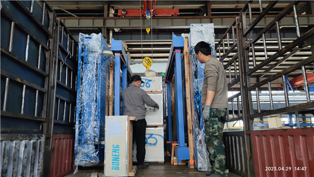 下午,深圳客戶兩臺凈化板碼垛機裝車發(fā)貨。